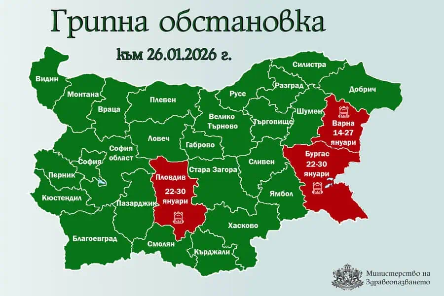 Епидемичната обстановка в страната остава динамична. В област Бургас въведените мерки остават в сила до 30 януари. За разлика от тях, в Добрич грипната епидемия вече е отменена, а във Варна мерките приключват на 27 януари.