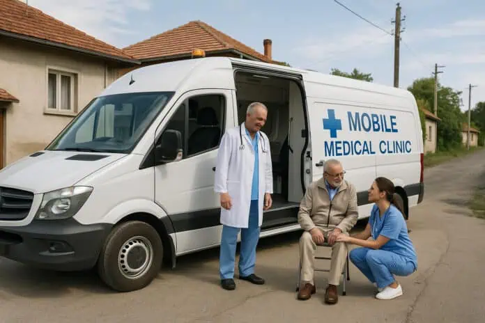 В специализирани мобилни единици за медицински прегледи – например мобилни кабинети или медицински автобуси.