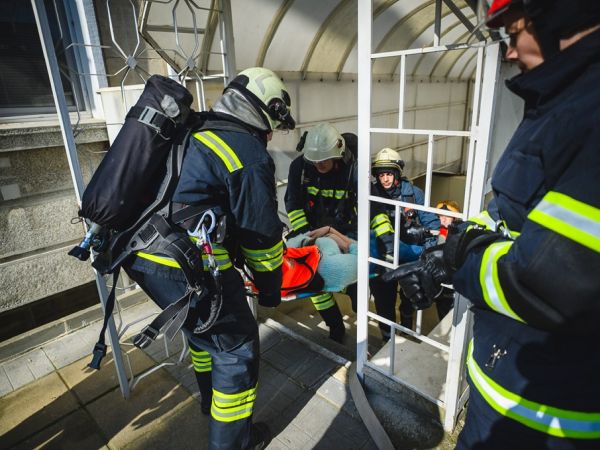 В рамките на събитието бяха демонстрирани и специализирани методи за евакуация от високите етажи на сградата, включващи приложението на автомеханична стълба, алпийски способи и специализиран надуваем спасителен дюшек.